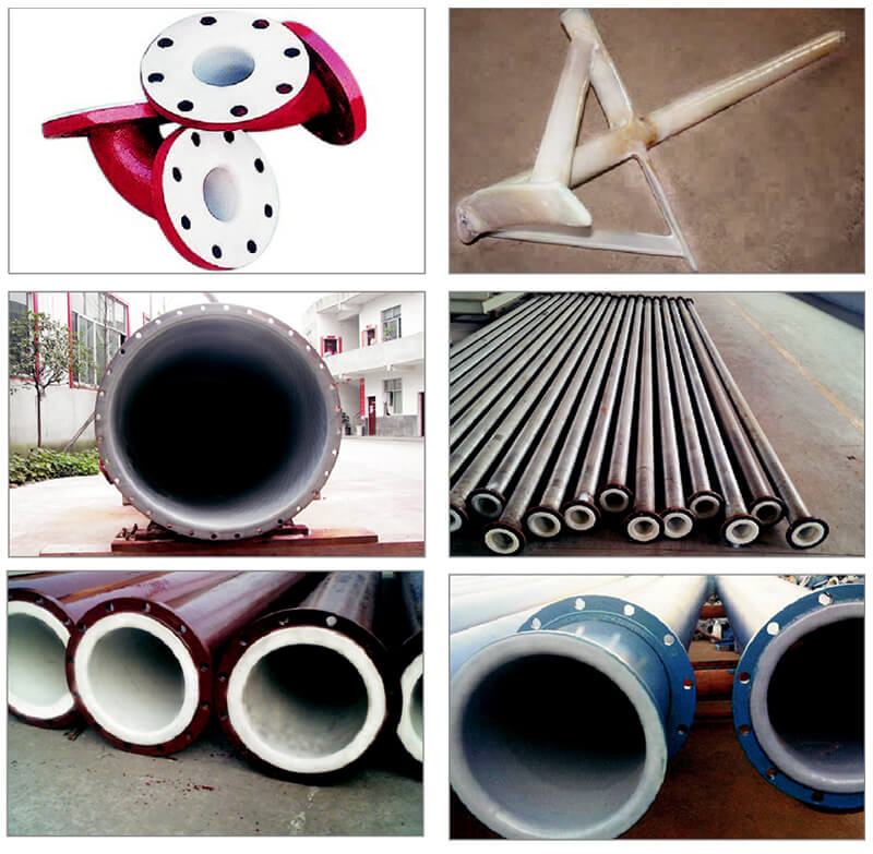 公司PE(PO)襯里采用的原材料是進口粉末狀的線性低密度聚乙烯(LLDPE),它的加工方法為旋轉(zhuǎn)成型,工件(鋼制容器或管道)在旋轉(zhuǎn)的過程中加熱,粉狀樹脂的工作表面吸熱熔融,旋轉(zhuǎn)一次便粘上一層粉狀樹脂,隨即吸熱融化,最后加工至規(guī)格厚度后冷卻成型,所以它在工藝上保證了襯層無針孔、無泄漏、無任何焊縫。并且該工藝對工件的內(nèi)外結(jié)構(gòu)無要求,無論結(jié)構(gòu)如何復(fù)雜,均能加工成型。在工件較大,運輸有困難的情況下還可以現(xiàn)場施工,使用溫度在100℃以內(nèi),在酸、堿、鹽等強腐蝕介質(zhì)中能長期穩(wěn)定使用,廣泛用于冶金、化工、制藥、食品、環(huán)保、能源等行業(yè)中接觸腐蝕介質(zhì)的管道、槽、罐、塔、風機、交換器、攪拌槳、閥門等。